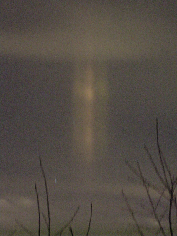 При определенных температурах и комбинаций газов и других заряженных групп частиц в воздухе на высоте от 5 до 6 километров от поверхности Земли – возможно наблюдение оболочек этих распределительных центров. На Земле эти оболочки имеют название – световые столбы. Не все световые столбы являются оболочками распределительных центров. Ниже приложу три фотографии оболочки такого центра.